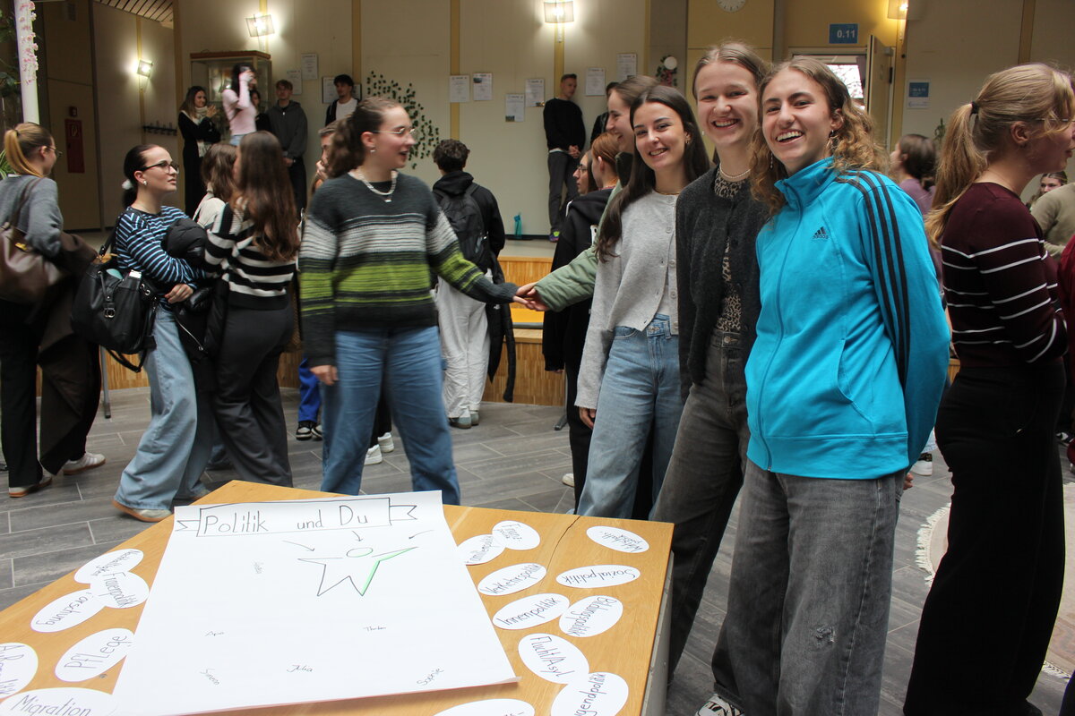 Am Dienstag, 17. März 2026, wurde die Mittagspause an unserer Schule zu einem lebendigen Ort des Austauschs, der Ideen und der Mitgestaltung: Von 12 bis 13.30 Uhr fand im Foyer des Gebäudes Grün das „offene politische Wohnzimmer“ für unsere Schülerinnen und Schüler statt – und stieß auf großes Interesse....