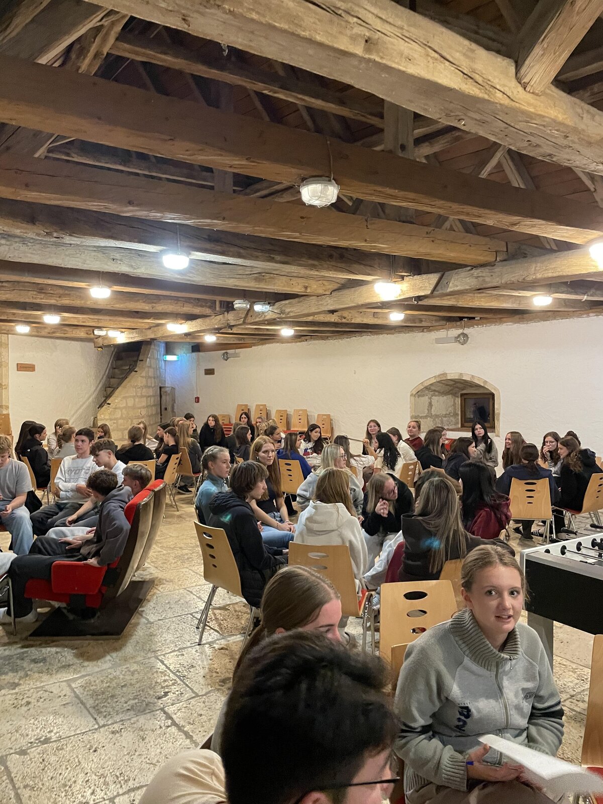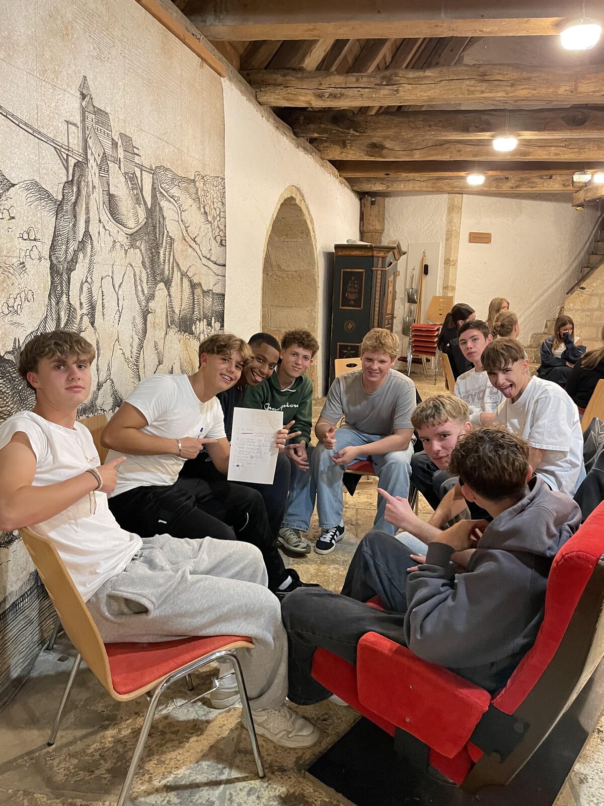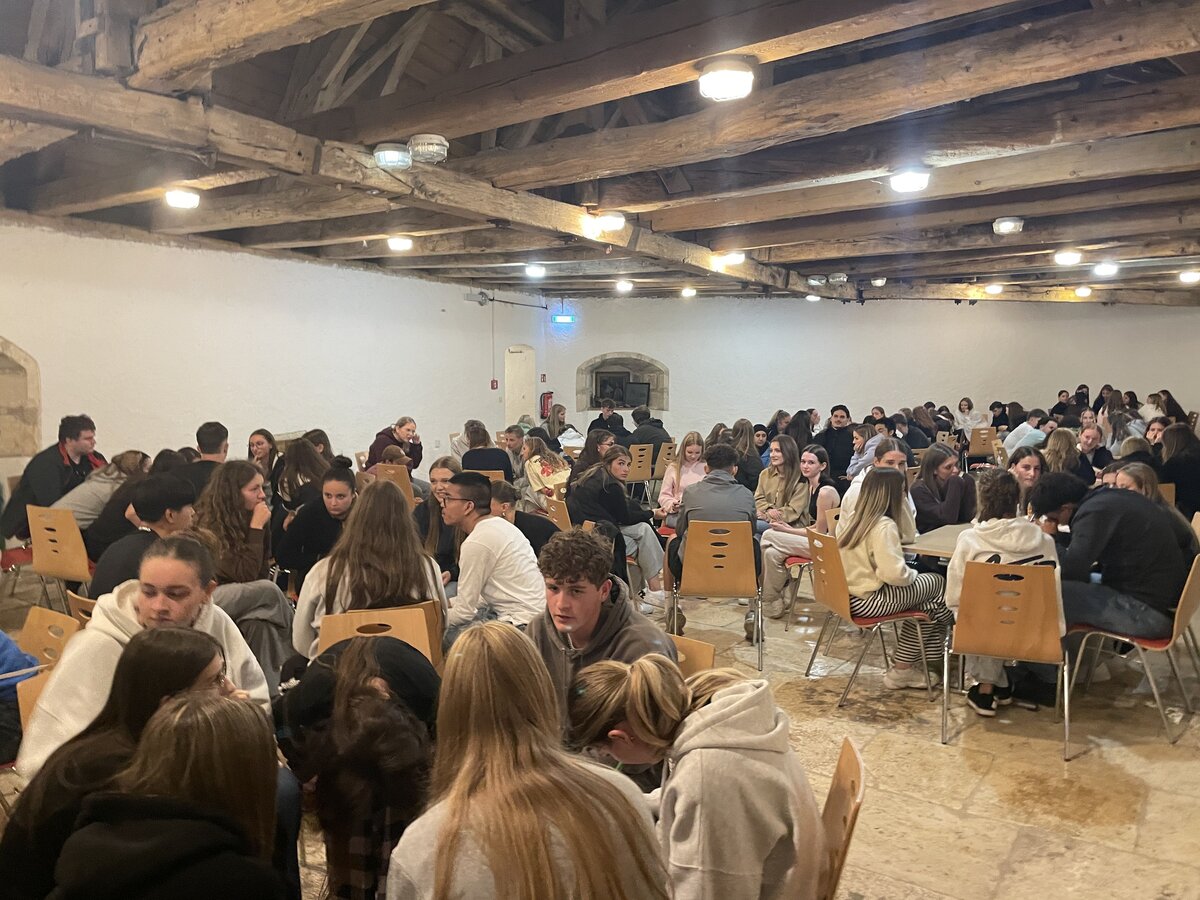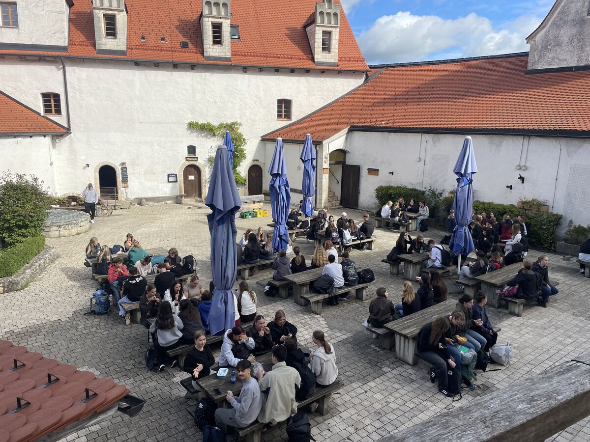 Die Teilnehmenden starteten früh am Morgen mit der Anreise per Zug und begaben sich anschließend auf eine erlebnispädagogische Wanderung zur Burg. Hier erwarteten sie kreative Quizaufgaben zur Region oder das Spiel „Steckbriefe“, bei dem die Schülerinnen und Schüler spielerisch mehr über ihre Mitschülerinnen und Mitschüler erfuhren. Das gemeinsame Vesper auf der Burg bot Gelegenheit, sich auszutauschen und erste Kontakte zu vertiefen.