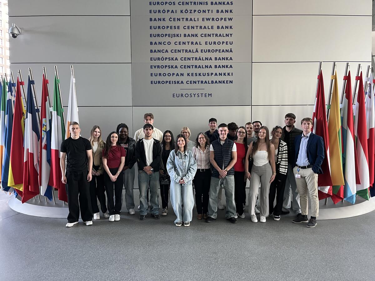 Die Studienfahrt begann am frühen Morgen für uns Bänker aus Tuttlingen und Rottweil mit der gemeinsamen Anreise im Reisebus. Gestartet hat unser Programm mit einem Zwischenstopp bei Audi in Neckarsulm. Vom Blechstück bis hin zum fertigen Auto, durften wir Einblicke in die Produktion eines Audi Fahrzeugs sammeln. Die Fahrt ging dann weiter zur EZB, welche einen interessanten Vortrag zum „digitalen Euro“ für uns vorbereitet hatte. Da dieses Projekt sich noch in der Planungsphase befindet, kam es zu einem intensiven Austausch bezüglich der nächsten Schritte für die Umsetzung durch die EZB. Nach Ankunft in der Jugendherberge, durften wir die Frankfurter Skyline bei Nacht genießen.