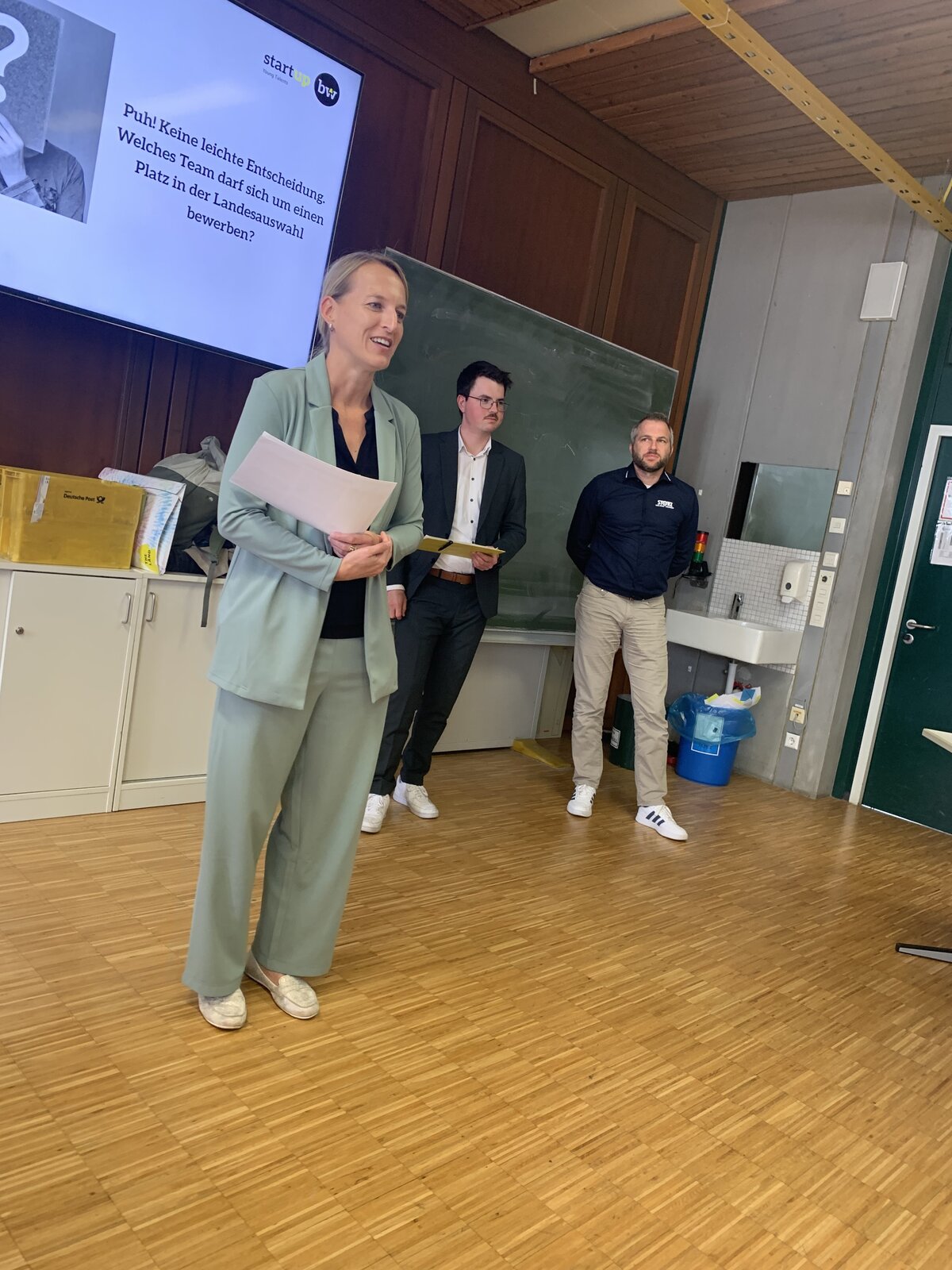 Den ersten Platz sicherte sich das Team „Green Gain“ mit seiner Idee, Fitnessgeräte als Stromgeneratoren zu nutzen – sowohl im privaten als auch im gewerblichen Bereich. Das Team erhält damit die Chance, sich für einen Platz in der Landesauswahl Start-up BW Young Talents zu bewerben.